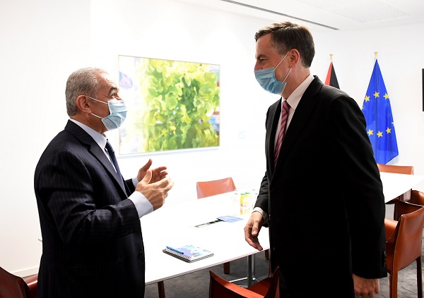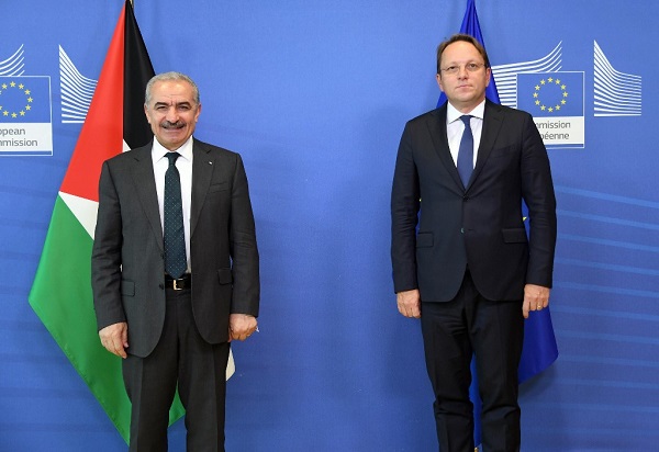 اشتية يبحث مع مفوض سياسة الجوار بالاتحاد الأوروبي تعزيز الدعم المالي لفلسطين