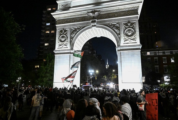 ناشطون يعتصمون أمام مبنى بلدية نيويورك تنديدًا باستمرار الحرب على غزة