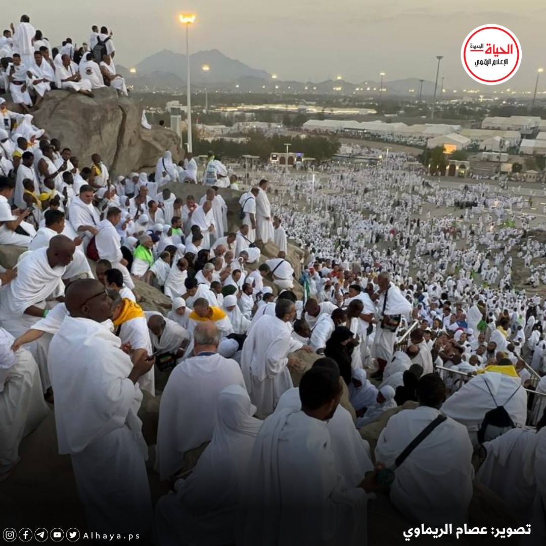 الحجاج يقفون على جبل عرفة ويدعون لأهل غزة