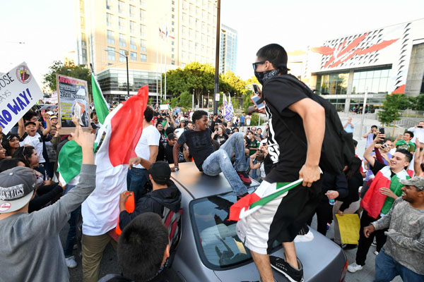 اشتباكات بين مؤيدي ترامب ومعارضيه خارج مؤتمر انتخابي في كاليفورنيا