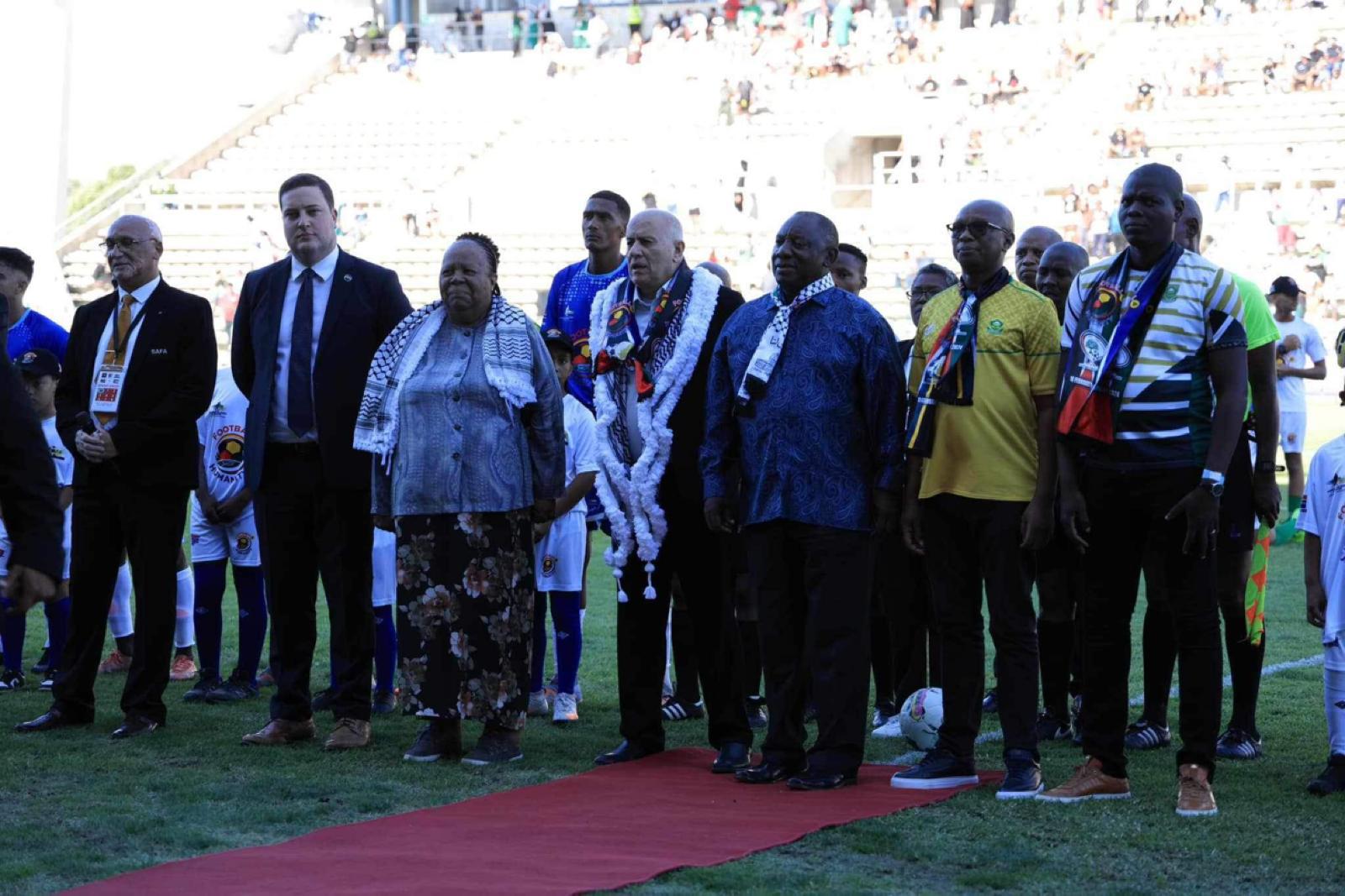 بحضور الرئيس رامافوزا.. جمهور جنوب افر يقيا يهتف بالحرية لفلسطين في مباراة تضامنية
