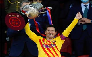 ماذا قال ميسي وكومان بعد فوز برشلونة بكأس الملك؟