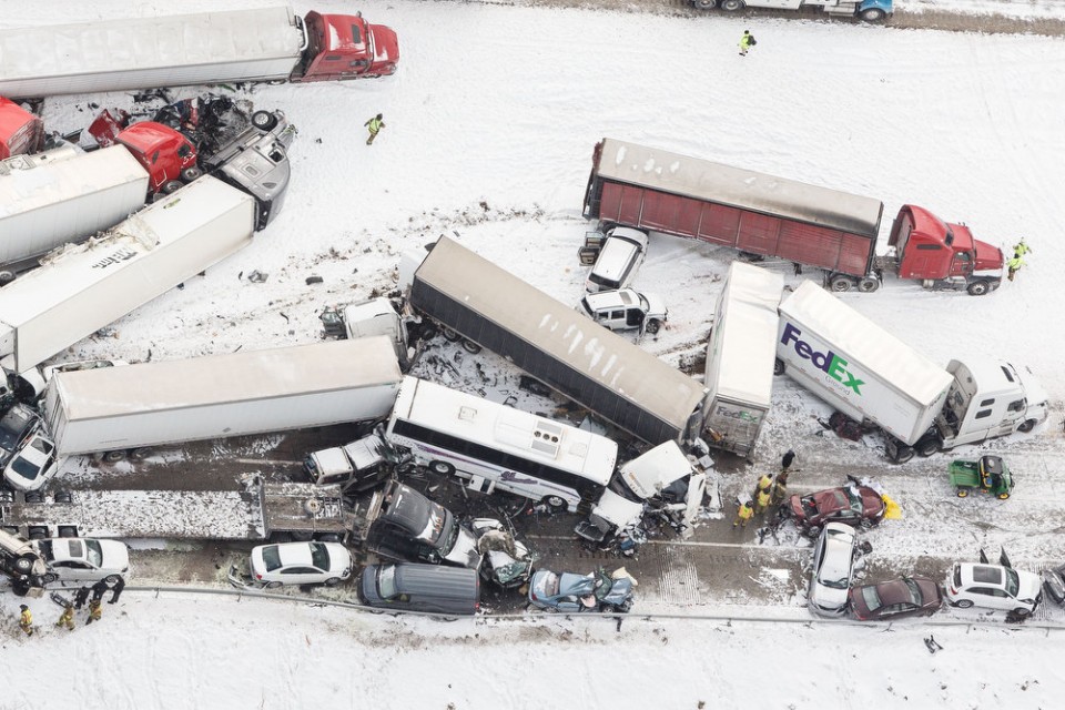 3 قتلى و70 مصابا في اصطدام 50 سيارة وشاحنة
