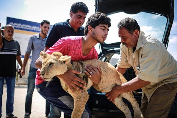 نقل أسدين من غزة الى الاردن لعجز صاحبهما عن رعايتهما