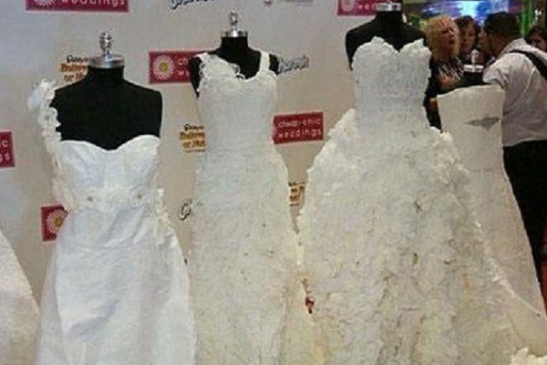 في مسابقة بنيويورك..المناديل الورق تتحول إلى فساتين زفاف