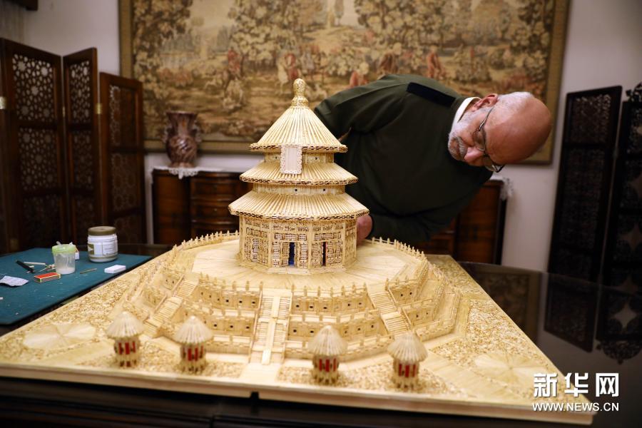 مصري يبني نموذجا لمعبد السماء الصيني من أعواد الثقاب