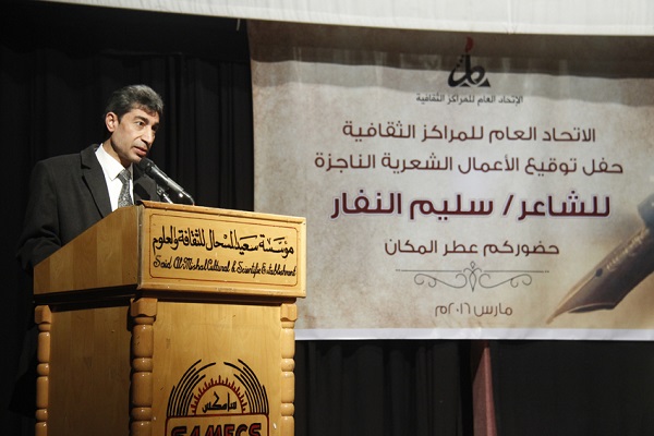 الشاعر سليم النفار يوقع أعماله الشعرية في غزة