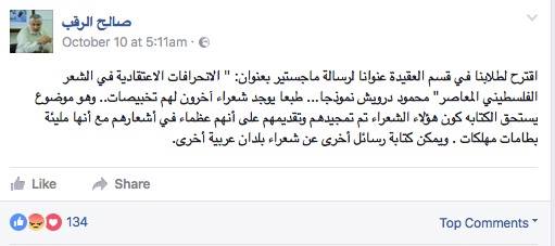 بعد الدحية: مسؤول حمساوي يسيء لدرويش ويصف اشعاره بطامات مهلكات
