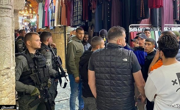 قوات الاحتلال تعتدي على المواطنين في باب العمود وتعتقل شابين