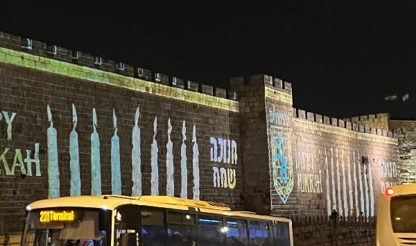 بلدية الاحتلال تضيء سور القدس برسومات تلمودية