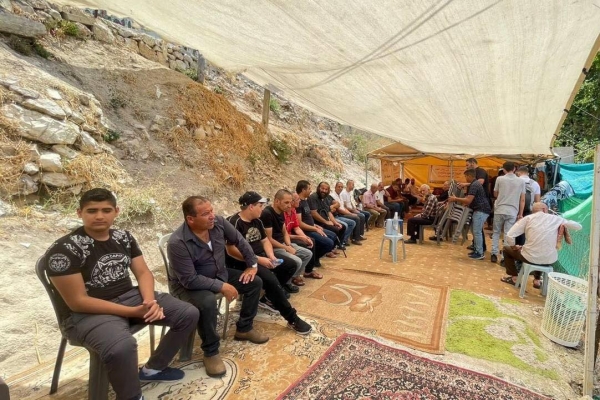 أهالي سلوان يؤدون الجمعة في خيمة اعتصام حي بطن الهوى تنديدا بقرارات الهدم