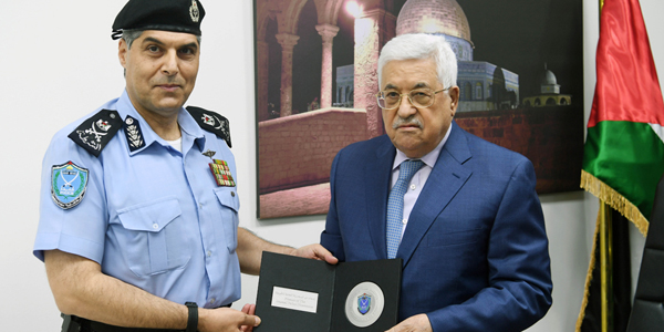 الرئيس يتسلم هدية رمزية من الشرطة بمناسبة قبول فلسطين في الإنتربول