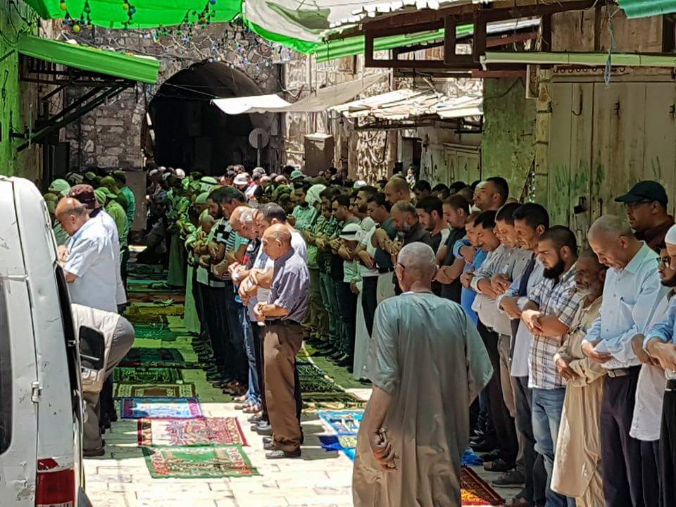 المقدسيون يؤدون صلاة الظهر في الشوارع وقرب أبواب الأقصى