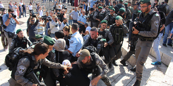 بالصور | اعتقال شاب اثناء قمع الاحتلال مسيرة لمقدسيين واجانب في باب العمود