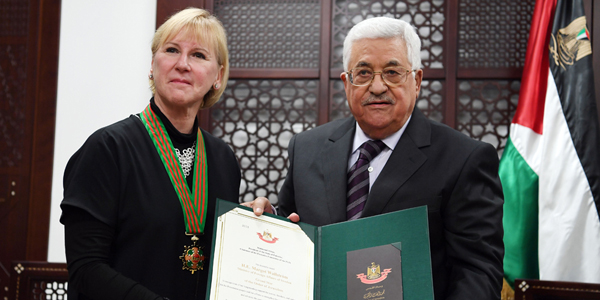 الرئيس يمنح وزيرة خارجية السويد النجمة الكبرى لوسام القدس