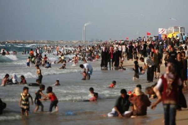 الغزيون يفرون من الحر الى البحر
