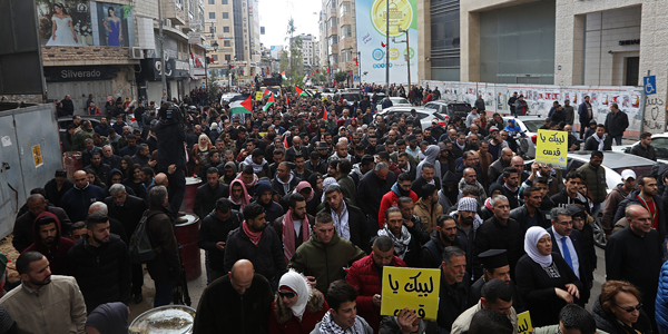 مسيرة جماهيرية وسط رام الله منددة بقرار ترامب تنتهي بمواجهات مع الاحتلال