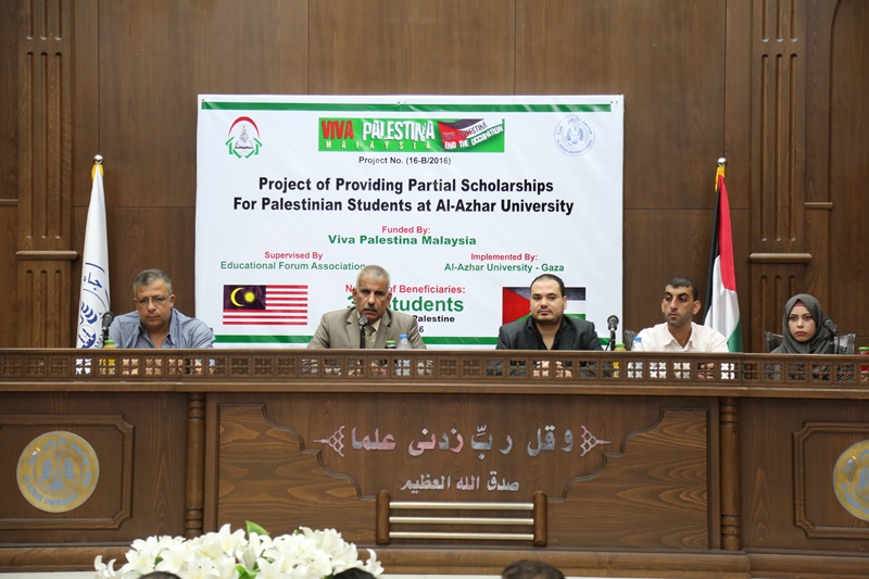 جامعة الازهر تسلم منحة مؤسسة فيفا ماليزيا فلسطين على عدد من الطلبة