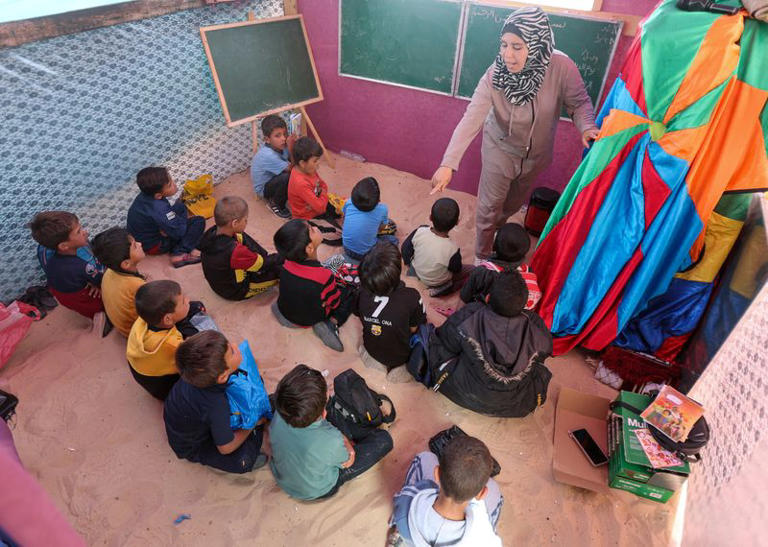"الصف التعليمي".. مبادرة تعيد أطفال مركز إيواء بغزة لمقاعد الدراسة