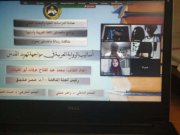 القدس المفتوحة تناقش أول رسالة ماجستير في حالة الطوارئ عبر تقنية (zoom)