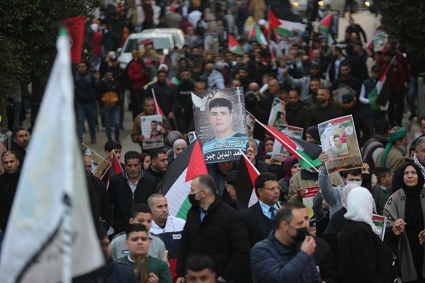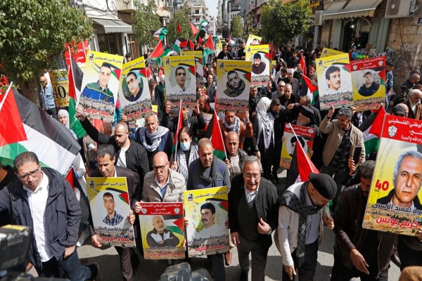 مسيرة وسط رام الله دعماً وإسناداً للأسرى في سجون الاحتلال