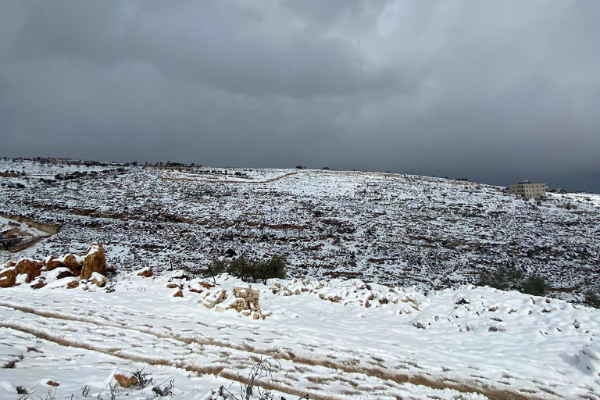تراكم الثلوج على جبال قرية دير جرير شمال شرق رام الله