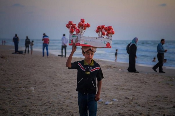 طلب الرزق على رمل شاطئ غزة