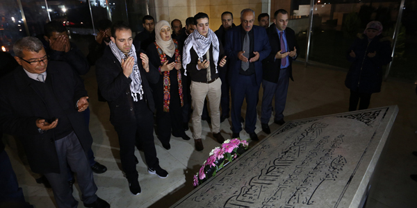 المحرران البلبول يضعان إكليلا من الزهور على ضريح أبو عمار