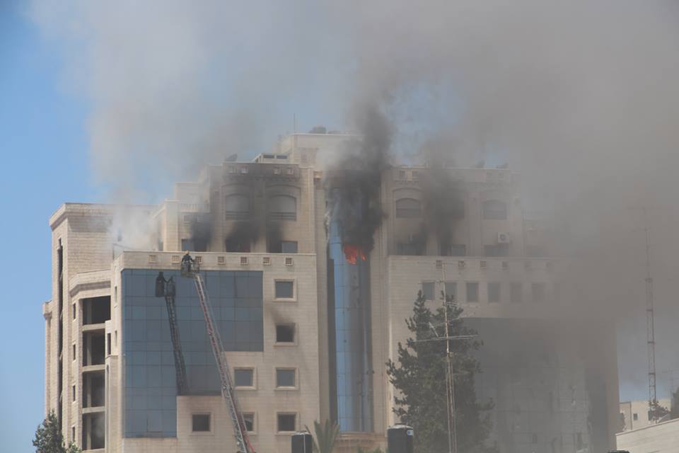 صور : حريق في مؤسسة A.P الاعلامية بعمارة المشوشر بالبيرة