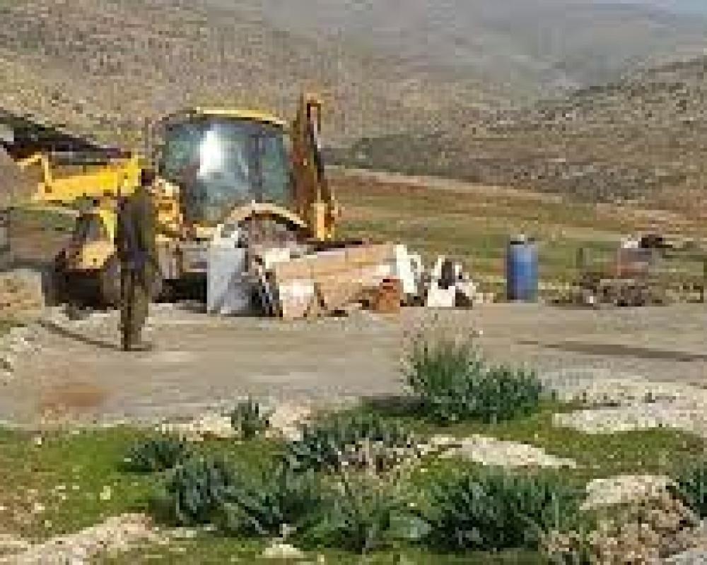 قوات الاحتلال تهدم 8 بركسات وملحقاته في خربة الطويل جنوب نابلس