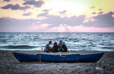 الغزيون يتناولون الافطار على شاطئ البحر هربا من موجة الحر